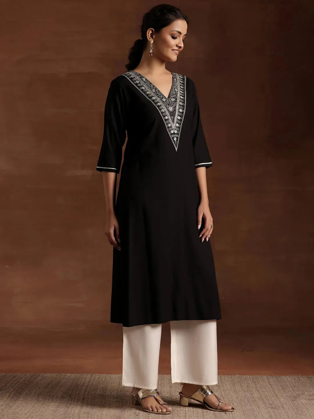 Black Yoke Design Rayon A-Line Kurta