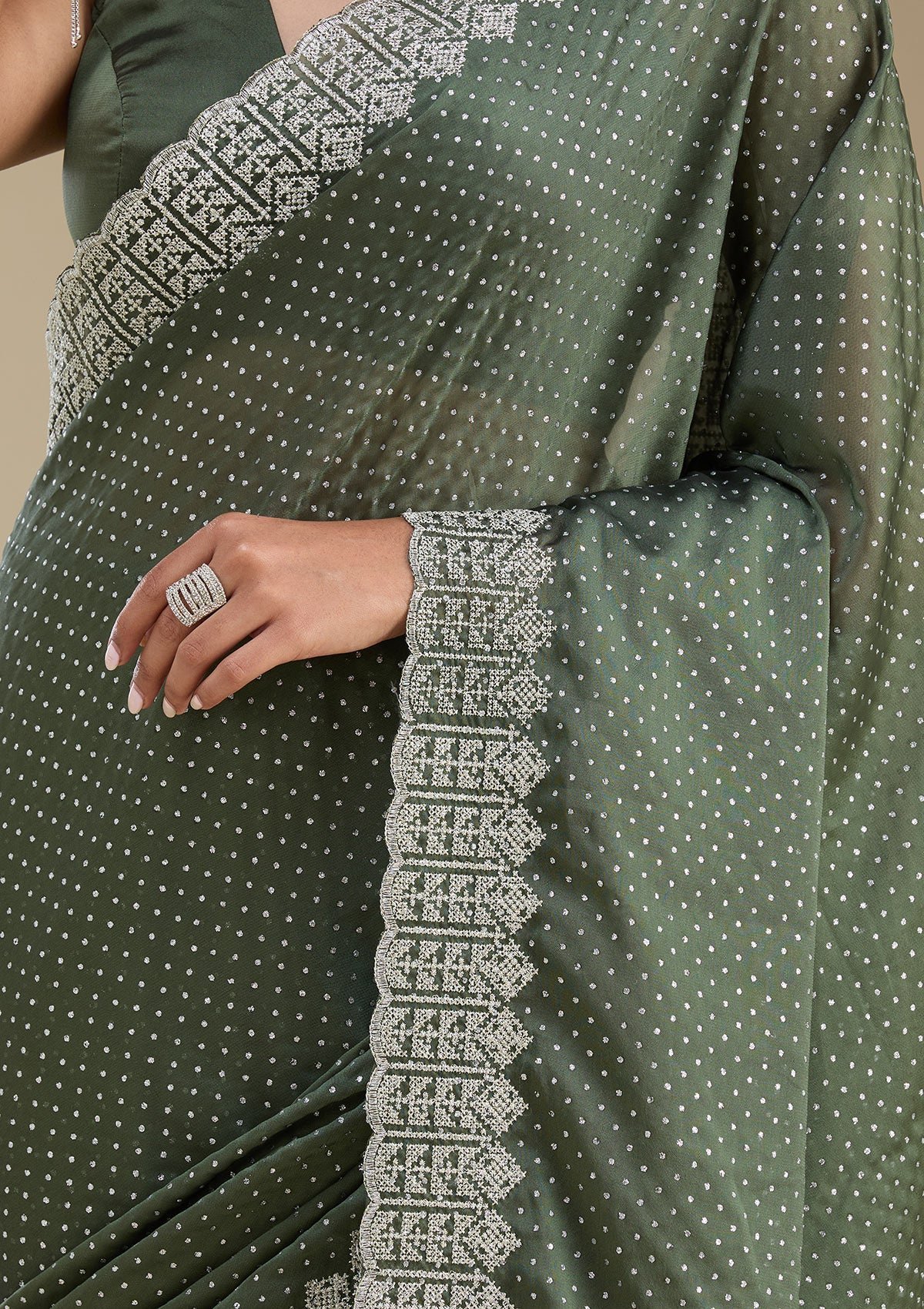 Mehendi Zariwork Satin Saree