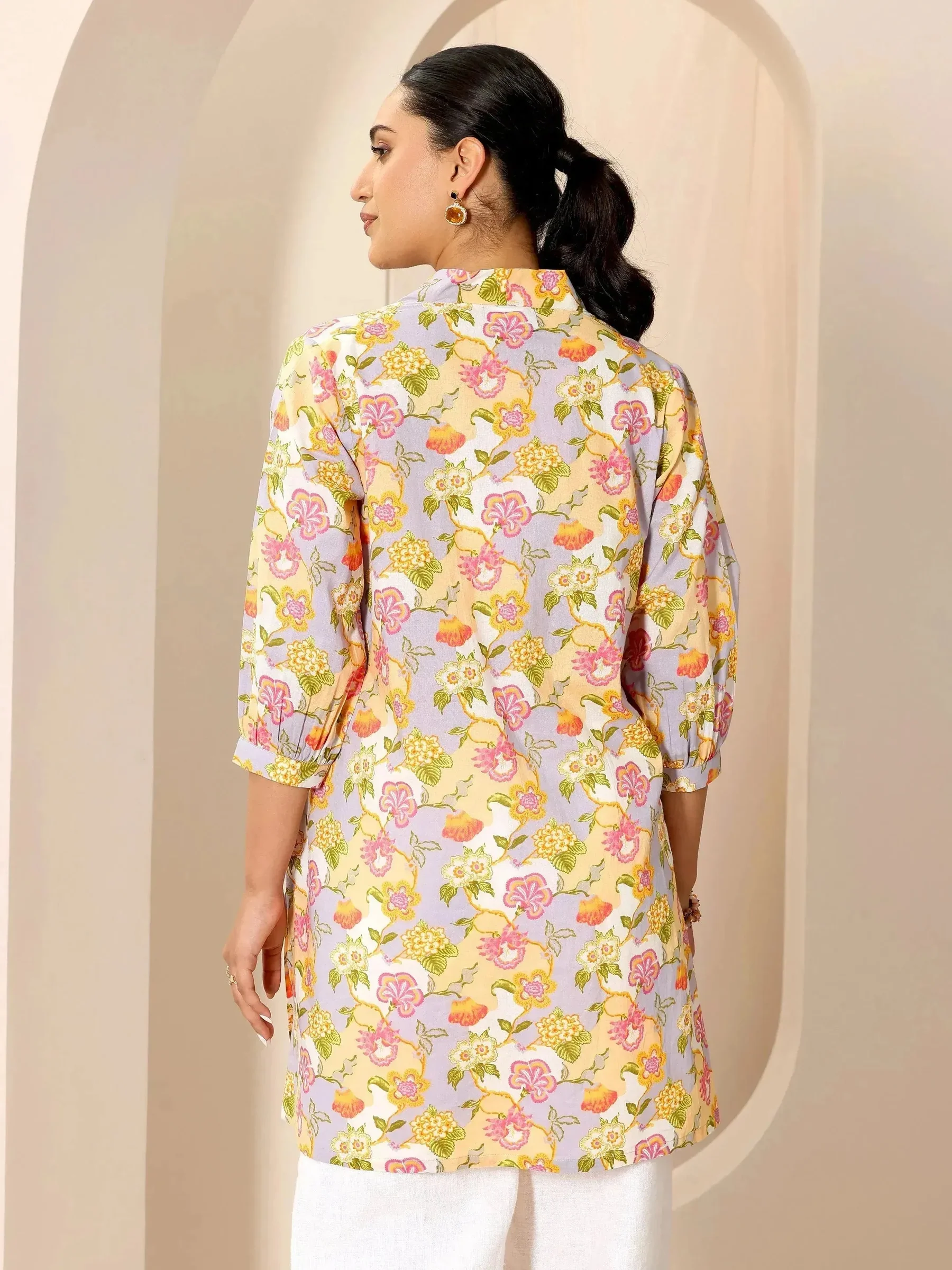 Multicoloured Printed Cotton Blend Straight Short Kurti