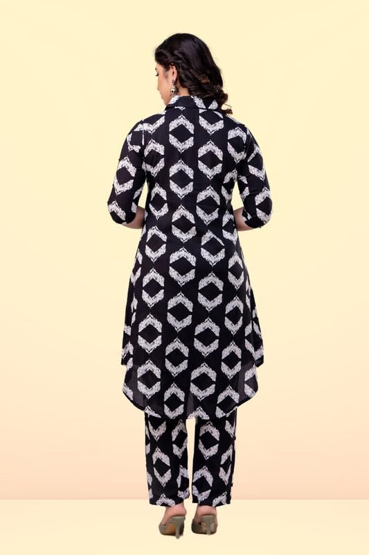 Women’s Printed Black Cord-Set Kurta with Pant, Easy to Wear, Lightweight, Breathable, Stylish & Comfortable, All-Day Comfort and Durability_S